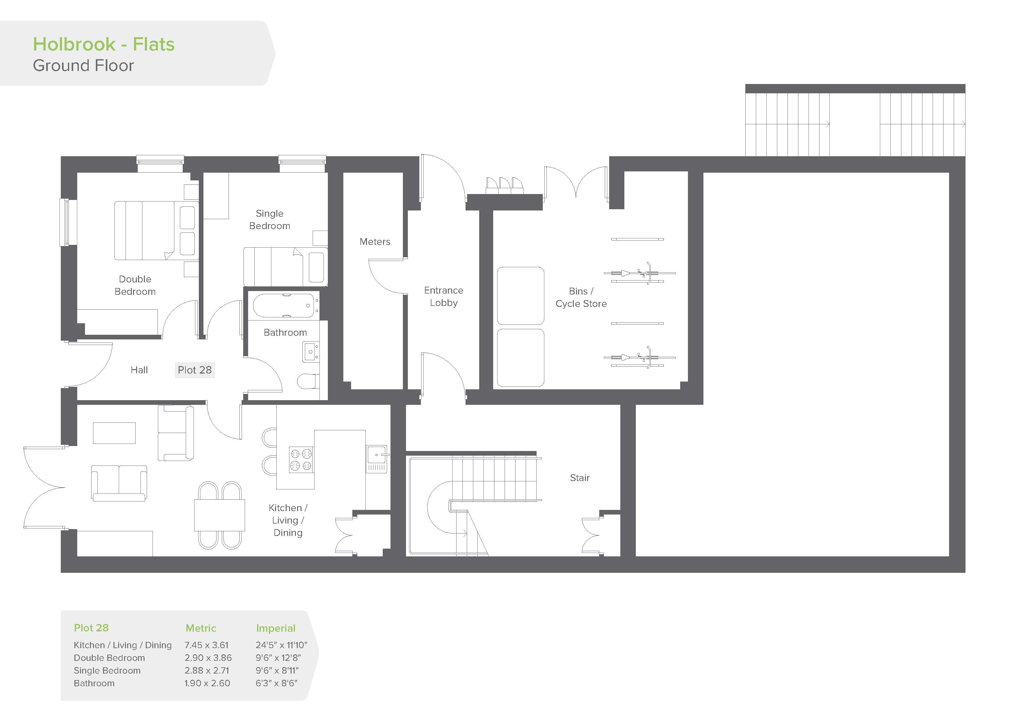 The open-plan kitchen, living, and dining area provides a bright, welcoming hub ideal for entertaining or relaxing. The double bedroom offers generous proportions, while the second single bedroom is perfect for guests, a nursery, or a home office. A stylish bathroom and a practical entrance hall complete the smart, efficient layout.