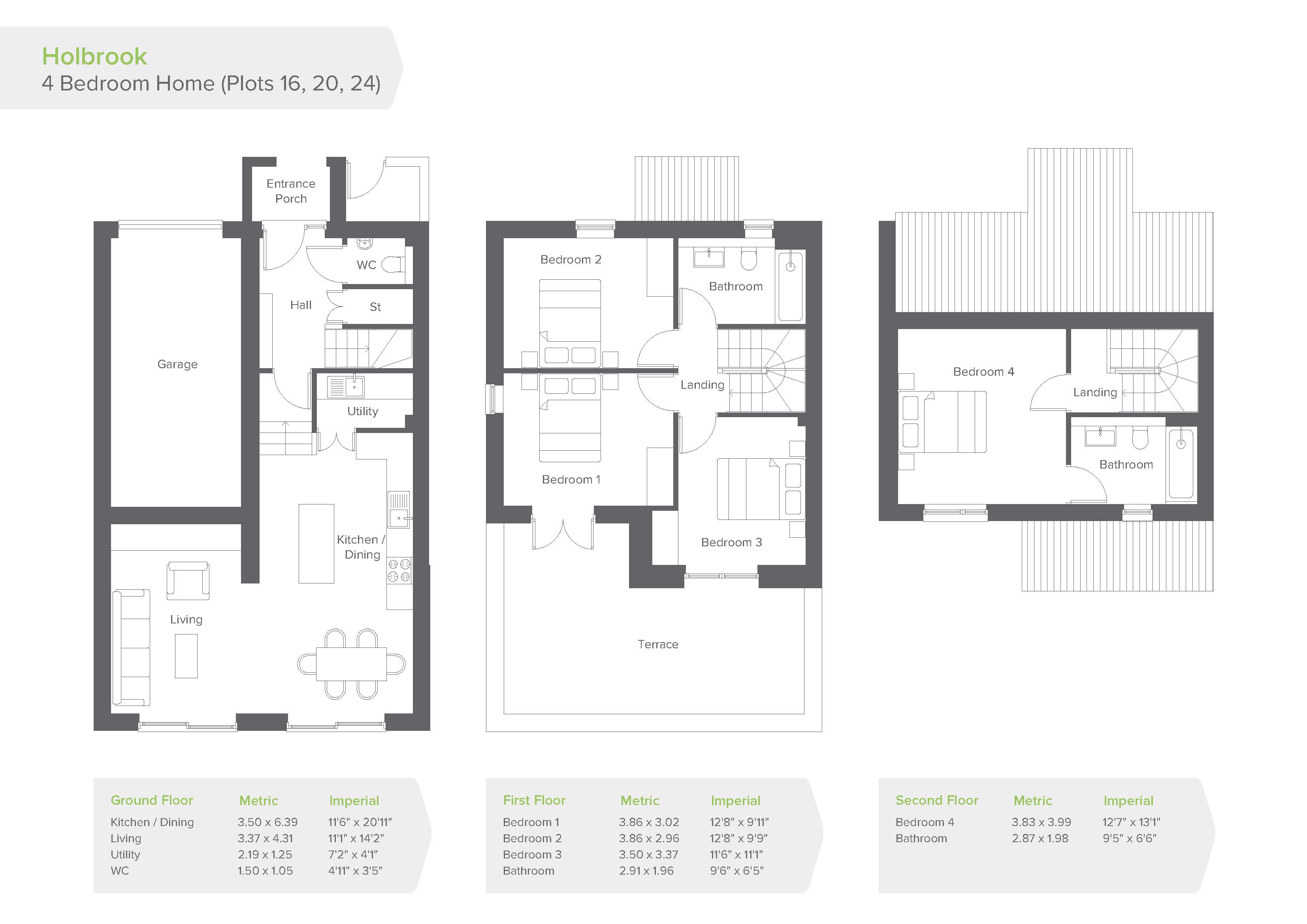 The ground floor features a generous open-plan kitchen and dining area, perfect for entertaining, alongside a bright living room, a practical utility room, and a convenient WC. The integrated garage provides added storage and everyday convenience.